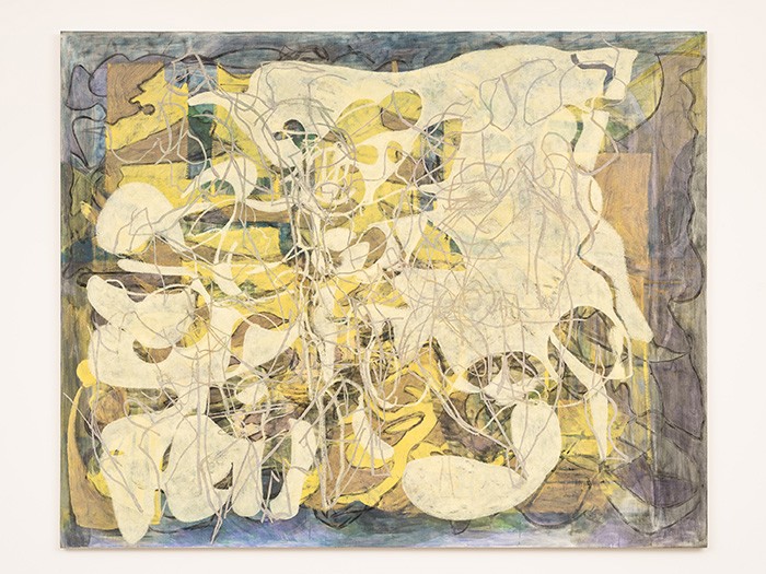 Tim Stoner’s paintings deal with the layering and removal of meaning. His approach draws on a diverse range of sources, from the meticulous restoration techniques of Old Masters to the expressive gestures of 1980s New York graffiti and the intricate beauty of Persian calligraphy. Using unconventional methods, Stoner submerges canvases in swimming pools, pours dissolving chemicals over them, and uses tools like scalpels, sanding discs, and palette knives to distress the surfaces. His paintings take several years to complete: they may start off as a landscape with hints of a blue sky and a horizon, but over time the imagery is largely erased or scraped away and reworked with a litany of calligraphic scrawlings and abstract lines. These acts of erasure destabilize the identity of the paintings, allowing them to hover between unfinished states and final compositions. The result is a visual language that speaks to the temporality and fragility of the image.